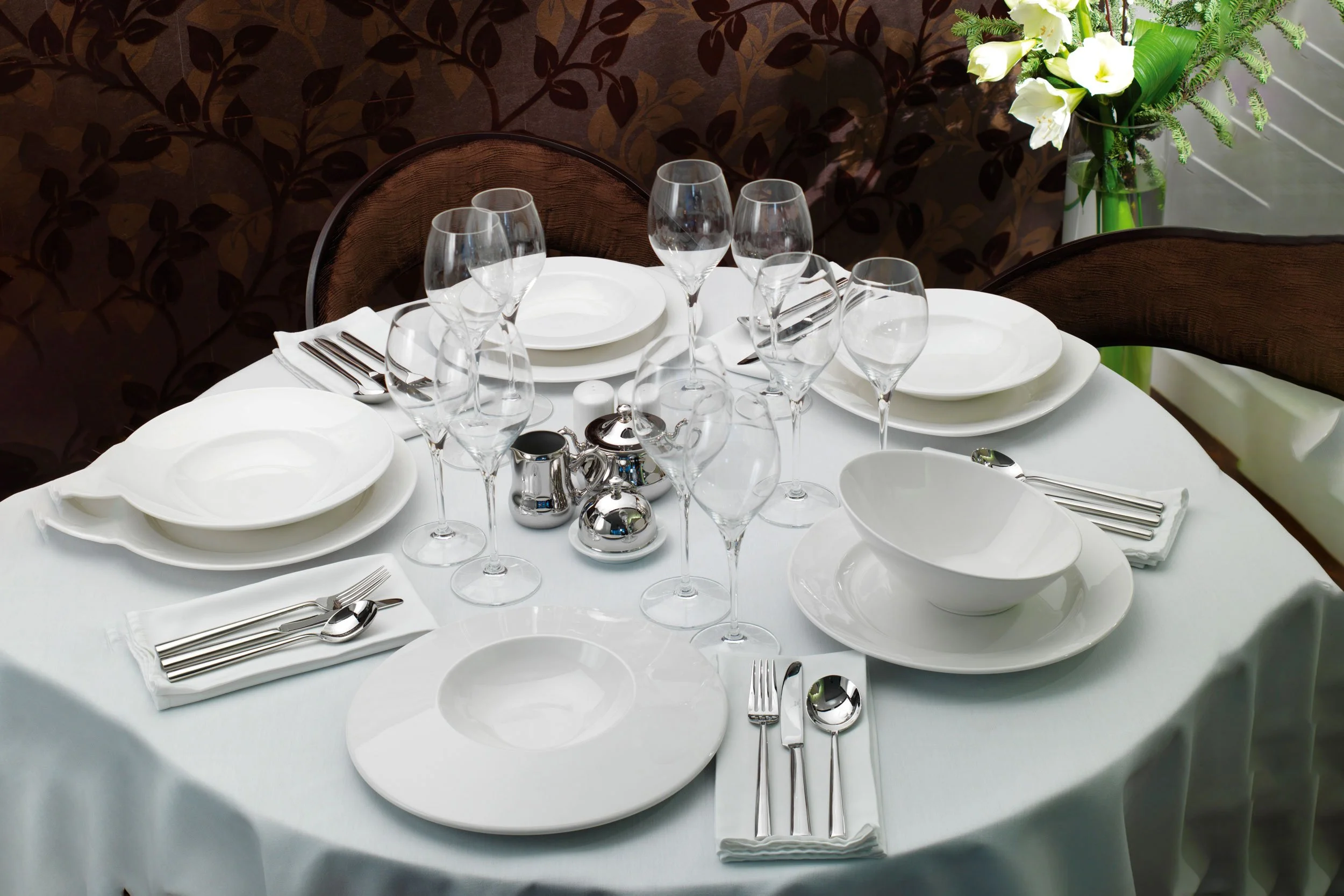 For simple, elegant, and clean designs, check out the Elia range. It offers a selection of high-quality white bone china available in a variety of different shapes and sizes.